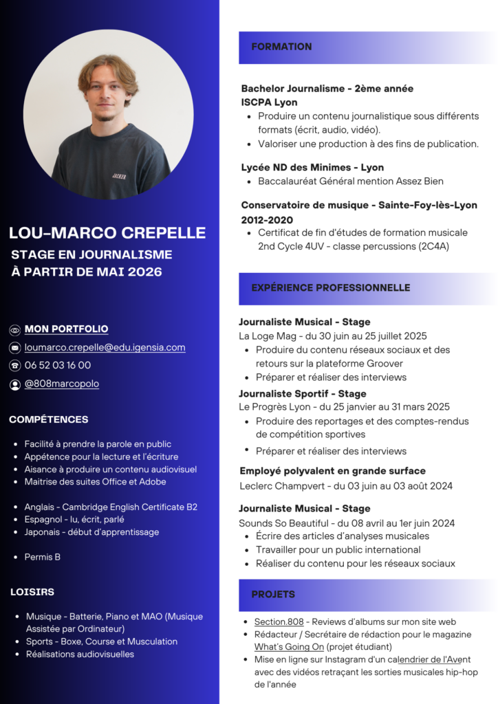 Passionné de musique et particulièrement de rap, j’ai pour objectif d’aborder la culture Hip-Hop sous tous ses angles et de la faire vivre à travers mes productions journalistiques.